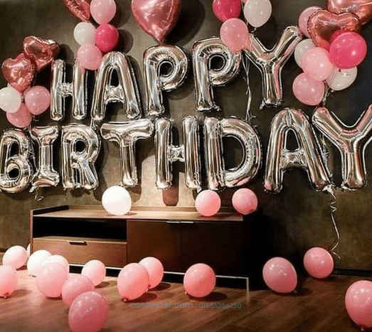 Happy Birthday Foil Banner | 1 Set Pink Love Foil | 6 Pieces Pink & White Balloons| 40Pieces