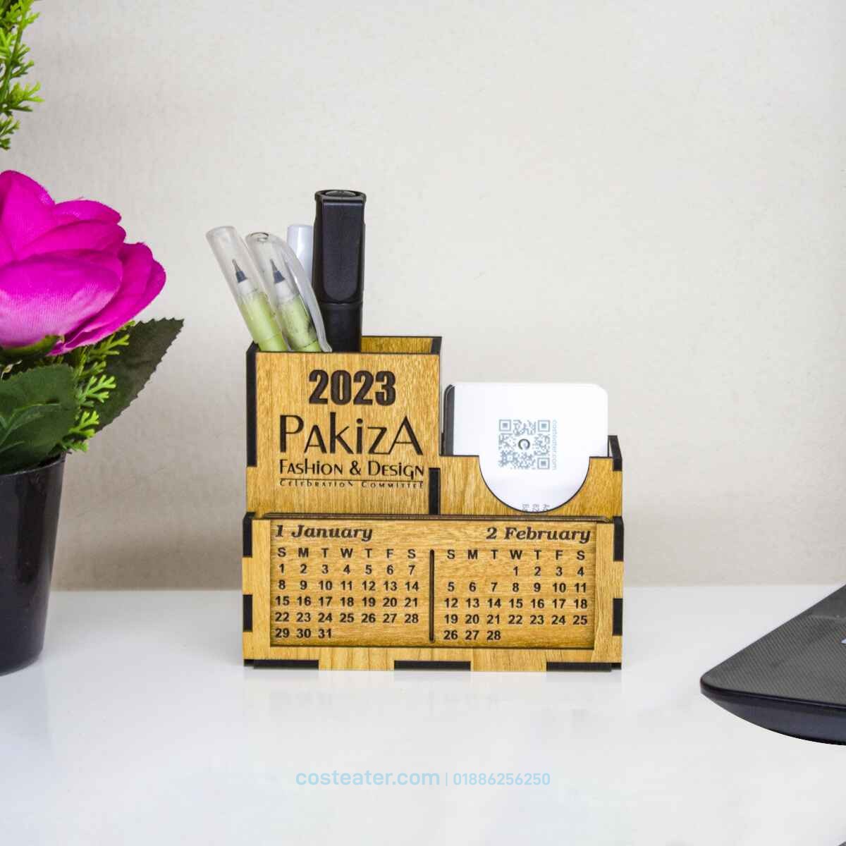 Experience the perfect blend of form and function with the Costeater Minimal Space-Saving Wooden Desk Calendar and Pen Holder.