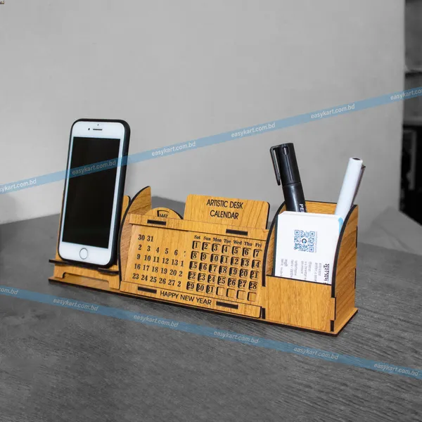 - 4-in-1 Functionality: Features a perpetual desk calendar, mobile stand, Pen and card holder, providing an all-in-one solution for a clutter-free workspace.